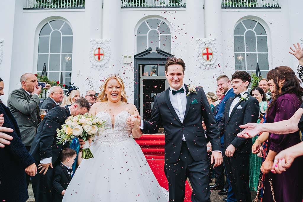 As part of the refurbishment, the Grade II listed chapel has been perfectly restored, with ornate stained-glass windows that cast beautiful warm light for me to enjoy and get creative with as your Beaumont House wedding photographer. I love capturing the faces of your guests as they enter the chapel and see the vast intricately painted ceiling, it’s a really unique and awe-inspiring building.